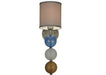 This unique wall sconce combines a Nickel finished suspension rod that embraces three Smokey Blue, White, and Amber Glass orbs and is crowned with a Textrene shade. This stunning wall fixture is perfect for placement in corridors and other areas in residential and hospitality settings from Newport, Rhode Island, to Boca Raton, Florida. The Bola Wall Sconce is included in our American-designed, handcrafted Art Deco Lighting Collection. UL and cUL listed for dry and damp locations however we do not recommend installing it in spaces that experience a large amount of moisture due to the fabric shade.