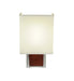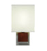 A luxurious modern wall sconce that beckons, Navesink features a White Linen shade that is complemented with a Nickel powder coated frame with a large wooden accent. Ideal for residential, hospitality and commercial applications. Handcrafted by expert artisans in our 180,000 square manufacturing facility in Yorkville, New York. This ADA wall sconce is available in custom sizes, styles and finishes. UL and cUL listed for damp and dry locations.