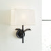 The Georgia one light wall sconce in aged iron offers shadow-free lighting in your powder room, spa, or master bath room. The Georgia Wall Sconce channels the natural beauty of flourishing leaves with perfect symmetry balanced by a circular backplate and a rectangular shade in fresh White Linen. Superior craftsmanship using a lost-cast wax technique results in a textured Aged Iron finish that resembles hand-forged iron.
