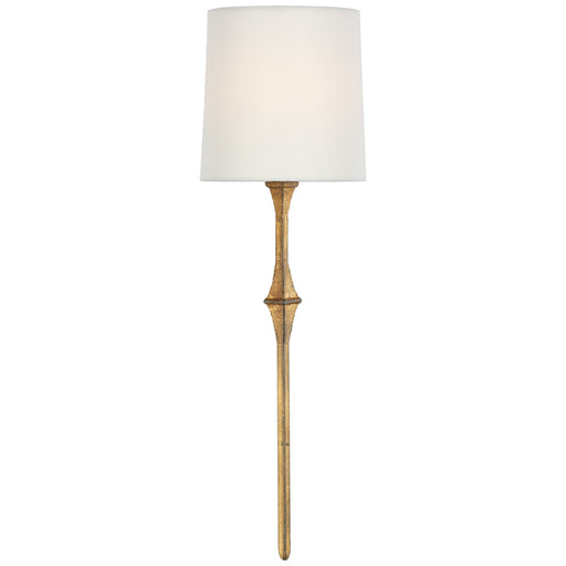 Clout Tail Sconce in Soft Brass with Linen ShadeDetails:Product Type: Drum ShadeFinish: Soft BrassShade: 7" x 7.5" x 8" LinenDesigner: Barbara Barr...