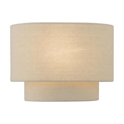 The sleek style and simple design of this wall sconce, makes it easy to use in any space. The double hand crafted oatmeal fabric hardback shade giv...