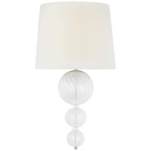 Clout Tail Sconce in Soft Silver with Linen ShadeDetails:Product Type: Drum ShadeFinish: Soft SilverShade: 7" x 7.5" x 8" LinenDesigner: Barbara Ba...