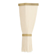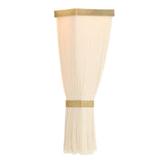 A lavish tassel of ivory microfiber is set in a textured metal framing, allowing the warm glow of LED light to project upwards. This sophisticated style is cinched with a matching chattered antique brass detail, adding to its jewel-like appeal. Damp-rated, although limited, covered outdoor conditions may affect finish.