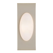An equestrian-inspired sconce of bone leather adds a masculine appeal to any study or vanity. Centered by an oval opal globe, this minimalist style is even more dynamic when staged in a pair. Finish will vary. Damp-rated, although limited, covered outdoor conditions may affect finish.