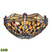 This classic tiffany series uses a dragonfly pattern as its motif. There are multi-hued beads interlaced within the tiffany glass shade and cast zinc base.
