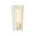 A single piece of folded piastre glass forms the ethereal silhouette of the Baxford sconce. Etched on the inside, the glass softens the light diffusion. The refined framework provides a glimmer of Aged Brass through the glass, adding structure and warmth.