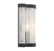 The timeless beauty of the quatrefoil inspired the shape of this Parkside 1-light sconce. Its curving frame is adorned with slats of antique glass for a beautifully textured look that softens the glow. Matte black finish. Parkside is 9.75" in height, 8" in width and extends 4" from the wall. It uses 1 candelabra size bulb of up to 60 watts (bulb not included).