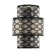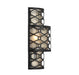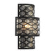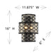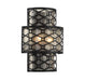 The Mannheim 2-light sconce is certain to draw attention in any space with its beautifully intricate latticework design, textured mica shade that creates an inviting glow and the Matte Black finish. It is 16" in height, 11.88" in width and extends 6" from the wall. Uses two candelabra size bulbs of up to 60 watts per bulb. Bulbs not included.