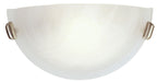 This wall sconce features contour lines and a bowed profile. With an understated design, this piece is perfect for a bathroom space or down a staircase. Featuring a white alabaster glass and a brushed nickel finish, this fixture will effortlessly blend with your existing décor.
