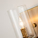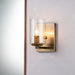 Charming and vintage inspired, the Bolivar 1-light wall sconce uses a mixed gold and antique brass finishes to give a genuine and edgy candle style design that shows off the antique gold detail used on the candle sleeve. This one-light wall sconce has cylinder shaped clear glass, and uses a modern crisp shape to update your bathroom space. The rectangle back plate finished in a sophisticated brass is the perfect finishing detail.