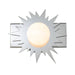 Looking to lighten up your space with a whimsical and art-inspired piece? Designed using a statement-making sun shape , this one-light wall sconce is the favorite pick for installing in pairs on either side of a mirror. Creating an eye-catching focal point, this one light star shaped wall lantern is unique enough to work in the most sophisticated spaces, and using the polished chrome finish to add a little more drama to your bathroom, hallway or favorite reading nook. Measuring 8" in length, 8.5" in height and 4.5" in depth, the Soleil bathroom light can easily fit in any of your favorite spaces.