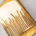 Find the light you love with this graceful and timeless gold leaf wall sconce. The relaxing and spa-like feel of this wall sconce, gives a beautiful silhouette that makes it the perfect choice to flank your bathroom mirror, place in your dining space or use in your favorite reading nook. The half drum piece of frosted glass sits perfectly in the gold grass-like holder allowing the perfect amount of light to flow into your space. Showing off our attention to details as the light beautifully shines through the bottom design as well as the grass-like shapes. Measuring 6" wide and 10" tall with a 4.5" depth, this wall sconce can be used in any space.
