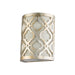 This collection is a charming, vintage Inspired design that features unique metal work and uses a weathered, multi-layered Finish. The beautifully designed Arabella series has a distressed Silver metal outer shade with a cream linen inner shade and glass diffuser to soften the light. This Flush sconce projects from the wall 4.375" and has a height of 8". The antique silver finish allows this sconce to move easily from a traditional to a contemporary designed room, reflecting your on-trend style.