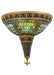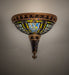 An original Meyda design, this exquisite Fleur-de-Lis inverted shade features an intricate tilework mosaic of Blue, Green, Teal, Mauve, Pink, Purple and Taupe art glass with Blue glass Fleurs surrounded by Chartreuse Yellow/Green and Root Beer accents. This shade is embraced by frame styling, with Gold colored highlighted fleurs and trim on a Mahogany Bronze finish that matches the hardware and decorative accents. Reminiscent of castle and cathedral glass, the Fleur-de-lis holds a prominent place in European Heraldry. The stained-glass fixture was created utilizing Meyda Tiffany's famous copperfoil construction process. The Fleur-de-lis Wall Sconce is featured in our American designed, handcrafted Fleur-de-lis Collection. UL and cUL listed for dry and damp locations.