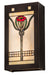An Arts and Crafts Inspired Bungalow Red Poppy style with Moss Green leaves on a Sunkissed Beige glass panel. The art glass wall fixture is created using the famous Meyda Tiffany copperfoil construction technique. Inspired by Poppy flowers found in the Lewis Ginter Botanical Garden, Richmond, Virginia. Brookgreen Gardens, Murrells Inlet, South Carolina. Marie Selby Botanical Gardens, Sarasota, Florida. The ADA Compliant wall sconce is featured in a warm Mahogany Bronze finish and will complement your home's dining area, hallway, or living space. The Parker Poppy Wall Sconce is included in our American-designed, handcrafted Stained Glass Lighting Collection. UL and cUL listed for dry and damp locations. Each fixture is a unique work of art with color variations based on natural ingredients inherent in the glass. Please get in touch with us if color matching is critical when ordering multiple items.