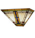 This authentic Mission Craftsman wall sconce features a dramatic grid design of Green and Purple/Blue with Red. This shade was created with high quality art glass, which was copperfoiled and hand-set by Meyda's expert artisans. Vibrant Mission colors include a Cloudy Beige background and Honey Border with accents of Red and Purple/Blue.