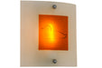 A subtle yet stunning impression of the aquatic Loon design is featured in Amber fused glass on a Clear Frosted Glass background. The geometric wildlife inspired sconce with a contemporary look embraces the wall with Nickel powder coated hardware. Handcrafted in our manufacturing facility at the foothills of the Adirondack Mountain lake country in Upstate NY. Custom sizes, styles, and colors are available, as well as dimmable energy efficient lamping options such as LED. The ADA Compliant sconce is UL and cUL listed for dry and damp locations.