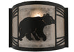 A charming Bear wanders through the woodlands as the sun rises in the warm summer sky. Pleasant ambient light projects through a Silver Mica diffuser, complemented with hardware and decorative accents featured in a Textured Black finish. This ADA-compliant wall sconce is perfect for illuminating walls in hallways and entryways in residential and hospitality spaces. Please look at the matching wall sconce, model 157293, the Happy Bear on the Loose Left Wall Sconce. A standard medium base lamping version, model 247117, is available. The Happy Bear on the Loose Wall Sconces are included in our American-made, American-designed, handcrafted Wildlife Collection and manufactured in Yorkville, New York. UL and cUL listed for dry and damp locations. Upstate New York's adventurous playland, known as the Adirondack Mountains, with its many breathtaking forests, lakes, and rivers, is the spiritual birthplace of Meyda and inspires our rustic-themed mica collections.