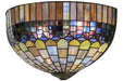 Using artful mastery Meyda creates an exquisite art glass fixture featuring a skirt with individual strips of Multicolored Plum glass including Yellows, Blues and Purples, that crown Blue Diamonds and multicolored tiles of Cobalt, Green and Purple, above a domed brickwork of Greens, Plums and Blue hues. The art glass shade is created using Meyda Tiffany's famous copperfoil construction process and enhanced with hardware finished in Craftsman Brown. Each shade is a unique work of art with color variations based on natural ingredients inherent in the glass. Contact us if color matching is critical when ordering multiple items.