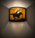 Bring the western charm of the prairie inside your home. A Cowboy riding his trusty horse accents this Western-inspired wall sconce. The fixture features an Amber Mica lens complemented with a Mahogany Bronze finish. The Cowboy Wall Sconce is included in our American-made, American-designed, handcrafted Western Lighting Collection and manufactured in Yorkville, NY. UL and cUL listed for dry and damp locations.