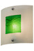 A subtle, elegant Dragonfly design is featured in Green colored fused glass highlighted on a square profile which is embossed on Clear Frost art glass to create a stunning piece of art. Hand cut glass is high fired and hot fused together for a unique effect. Decorative accents are featured in a Nickel finish. Handmade by Meyda artisans in the USA, this dramatic lighting design is available in custom colors, sizes, styles and energy efficient lamping options. The wall fixture is UL and cUL listed for dry and damp? locations.