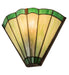 A classic stained glass design to complement any decorative scheme, from traditional and contemporary, to eclectic or nostalgic. This stunning wall sconce features an appealing Avocado Green stained glass shade with Green scalloped trim and edged in Radiant Amber stained glass jewels. The fan shaped shade is created using the famous Meyda Tiffany construction process. The hardware is finished in a handsome Mahogany Bronze. UL and cUL listed for dry and damp locations. Each shade is a unique work of art with color variations based on natural ingredients inherent in the glass. Contact us if color matching is critical when ordering multiple items.