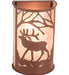 Rustic charm is captured beautifully with this majestic Elk meandering through the forest while the morning sun rises in the background of this natural wildlife inspired wall sconce. Soft ambient light projects through stunning Silver Mica which is complemented with a frame and hardware hand finished in Rust. This curvaceous wall fixture is Made to Order by highly skilled artisans in our 180,000 sq ft manufacturing facility in Yorkville, NY, at the foothills of the Adirondack Mountains. This sconce is available in a wide range of custom choices including various designs, lens colors, sizes and metal finishes. UL and cUL listed for damp and dry locations.