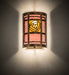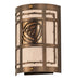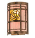 This handsome Bungalow Rose adorned mission wall sconce is handcrafted in the USA by Meyda artisans. The handsome fixture is finished in Antique Copper and has Birch bark and Amber mica panels.