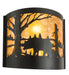 Drawing inspiration from the wildlife and natural beauty in the nearby Adirondack Mountains. A Majestic Bear wanders near this woodland lake while surrounded by Pine Tree silhouettes. The curvaceous shade features an Amber Mica lens complemented with a Textured Black finish. Ideal for illuminating hallways and dining areas in residential and hospitality settings, from Rockland, Maine, to Eden Prairie, Minnesota, to Eugene, Oregon. The Bear at Lake Wall Sconce is featured in our American-made, American-designed, handcrafted Wildlife Lighting Collection. Manufactured in Yorkville, New York. UL and cUL listed for dry and damp locations.