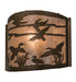 With a swoosh climbing sunward comes a flock of Ducks soaring in flight and stretching out above the mountain lake, against the sun-split sky and up towards the heavens. This charming wall sconce features a stunning Silver Mica lens, which diffuses soft ambient illumination as decorative accents, hardware, and frame are featured in an Antique Copper finish. This ADA-compliant fixture is ideal for illuminating hallways, dining rooms and other spaces in hospitality, commercial and residential settings throughout the US, including Henderson, Nevada, to Helena, Montana, to Everett, Washington. The Ducks in Flight Wall Sconce is featured in our American-made, American-designed, handcrafted Wildlife Lighting Collection. This fixture is manufactured in Yorkville, New York. UL and cUL listed for dry and damp locations.