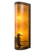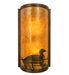 Listen to the melodious calls of the Loon echo across the mountain lake as this aquatic bird wades across the water while the lazy afternoon sun shines brightly in the background. The ADA-compliant Loon Right Wall Sconce features an Amber Mica shade which is enhanced with an appealing frame and hardware featuring an Antique Copper finish. The complementary 9 Wide Loon Left Wall Sconce, item 214485, is also available. The Loon Wall Sconces are included in our American-made, American-designed, handcrafted Wildlife Collection and manufactured in Yorkville, New York. The fixture is UL and cUL listed for dry and damp locations."