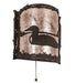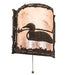 Listen to the melodious calls of the Loon echo across the mountain lake as this aquatic bird wades across the water while the lazy afternoon sun shines brightly in the background. The Loon Left Wall Sconce features a Silver Mica shade, which is complemented by an appealing frame and hardware featuring a Distressed Chestnut finish. The wall fixture includes a pull chain for easy on/off functionality. A complementary Loon Right Wall Sconce (204794) is also available. The Loon Wall Sconces are included in our American-made, American-designed, handcrafted Wildlife Collection and manufactured in Yorkville, New York. UL and cUL listed for dry and damp locations.