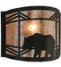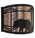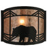 A Black Bear in a diamond pattern is featured on this nature inspired wall sconce. Illuminated through Silver mica panels, the fixture has a Black finish and is handcrafted in the USA by Meyda artisans.