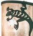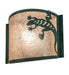 A delightful southwestern inspired design. This curvaceous wall sconce features the small lizard design on a Silver Mica lens which is enhanced with a Forest Green finish. Made to Order in our 180,000 square foot manufacturing facility in Yorkville, New York, located at the foothills of the Adirondack Mountains. Additional nature inspired designs available, as well as custom diffuser colors, metal finishes and sconce sizes. UL and cUL listed for damp and dry locations.