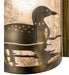 You can almost hear the melodious calls of the Loon echo across the woodland lake as this aquatic bird wades across the water. The wall fixture is designed with a Silver Mica diffuser, enhanced with decorative accents and hardware featured in an Antique Copper finish. The sconce is ideal for illuminating hallways and other rooms as a sconce in man caves, she sheds and dens from San Angelo, Texas, to Compton, California, to Hillsboro, Oregon. This wall fixture is complemented with 235600, the 8 Wide Loon Left Wall Sconce. The Loon Wall Sconces are included in our American-made, American-designed, handcrafted Wildlife Collection and manufactured in Yorkville, New York. UL and cUL listed for dry and damp locations."