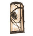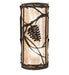 Invite the beauty of Nature into your home with a charming wall fixture featuring metal accents designed as a Pinecone, Pine needles, and branches. The stunning Silver Mica diffuser is enhanced with a Distressed Chestnut finish. This fixture can be complemented with model 258144, the Whispering Pines Right Wall Sconce. The Whispering Pines Wall Sconce is featured in our American-made, American-designed, handcrafted Nature Inspired Collection. It is manufactured in Yorkville, New York, and is UL and cUL listed for dry and damp locations. Upstate New York's adventurous playland, known as the Adirondack Mountains, with its many breathtaking forests, lakes, and rivers, is the spiritual birthplace of Meyda and inspires our rustic-themed mica collections.