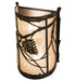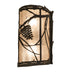 Listen closely. You can almost hear the soft whisper of the Pine Branches as they dance in the wind. Enjoy the ambiance of soft beautiful light diffused through the Silver Mica lens featuring stunning Pinecone and Pine Branch designs. The fixture is hand finished in a handsome Oil Rubbed Bronze. The Whispering Pines Wall fixture is Domestically Produced in the USA at our Yorkville, NY manufacturing facility. It pairs with 238003, Whispering Pines Right Sconce. Shade colors, metal finishes and fixtures sizes can be customized to your taste. UL and cUL listed for dry and damp locations.