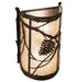 Rustic charm comes to light as you can almost hear the soft whisper of the Pine Branches as they dance in the wind. Enjoy the ambiance of soft beautiful light projected through the Silver Mica curvaceous diffuser featuring stunning Pinecone and Pine Branch designs. The fixture is enhanced with an Oil Rubbed Bronze finish. The Whispering Pines Wall fixture is Domestically Produced in the USA at our Yorkville, NY manufacturing facility. It pairs with 238002, Whispering Pines Left Sconce. Shade colors, metal finishes and fixtures sizes can be customized to your taste. UL and cUL listed for dry and damp locations.