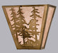 A stand of Tall Pines accent this nature inspired wall sconce. The fixture is finished in Antique Copper, has Silver mica panels, and is handcrafted in the USA by Meyda artisans.