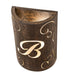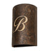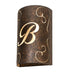 This personalized wall fixture features a Gothic Gold finished frame and a graceful scrolled design with the B Monogram that highlights with a Sahara Taupe Idalight diffuser. The Personalized B Monogram Wall Sconce is included in our Personalized Collection and is manufactured in Yorkville, New York. The fixture is UL and cUL listed for dry and damp locations. This specific wall sconce can be ordered as is or with another letter, or font of your choosing, and we will coordinate the custom logo or monogram with you to suit your project. Please call for the price and lead time.