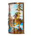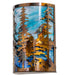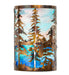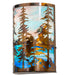 This curvaceous sconce features mesmerizing Pine Tree silhouettes that stand tall as the brilliant morning sun rises above a brilliant mountain lake in the background. Beautiful ambient light is projected through a stunning Purple, Blue and Green art glass diffuser which is complemented with decorative accents and hardware featured in a Light Burnished Transparent Copper finish. Ideal for illuminating hallways, dining areas and other spaces in residential, hospitality and commercial settings. The Tall Pines Wall Sconce is featured in our American made, American designed, handcrafted Nature Inspired Lighting Collection. Manufactured in Yorkville, New York. UL and cUL listed for dry and damp locations.