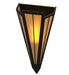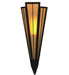Add elegance with Deco inspired lighting reminiscent od old Hollywood theaters. The Amber Quartz Idalight lens defines an extraordinary V-shaped sconce which is complemented with decorative accents, frame, and hardware in Textured Black finish. The fixture is ideal for foyers, corridors and other interiors in homes, home theaters, resorts, hotels, and restaurants. Custom crafted in our 180,000 square foot manufacturing facility in Yorkville, NY. Available in custom designs, lens colors, hardware finishes, and sizes. Dimmable energy efficient lamping options offered. UL and cUL listed for damp and dry locations.