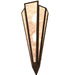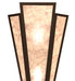 Silver Mica is transformed into cool abstract lighting design similar to the famed deco designs showcased in Classic Hollywood theaters. This extraordinary V-shaped sconce is complemented with decorative accents and hardware featured in a Timeless Bronze finish. Ideal for foyers, corridors and other interiors in homes, home theaters, resorts, hotels and restaurants. Handcrafted by highly skilled artisans in our 180,000 square foot manufacturing facility in Yorkville, New York. Custom colors, styles and sizes are available. Dimmable energy efficient lamping options offered. UL and cUL listed for damp and dry locations.