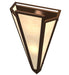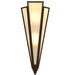 Sahara Taupe Idalight is transformed into abstract lighting design similar to the famed deco designs showcased in Classic Hollywood theaters. This extraordinary V-shaped sconce is complemented with decorative accents and hardware featured in a Timeless Bronze finish. Ideal for foyers, corridors and other interiors in homes, home theaters, resorts, hotels and restaurants. Handcrafted by highly skilled artisans in our 180,000 square foot manufacturing facility in Yorkville, New York. Custom colors, styles and sizes are available. Dimmable energy efficient lamping options offered. UL and cUL listed for damp and dry locations.