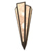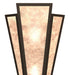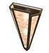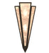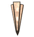 Silver Mica is transformed into cool abstract lighting design similar to the famed deco designs showcased in Classic Hollywood theaters. This extraordinary V-shaped sconce is complemented with decorative accents and hardware featured in a Oil Rubbed Bronze finish. Ideal for foyers, corridors and other interiors in homes, home theaters, resorts, hotels and restaurants. Handcrafted by highly skilled artisans in our 180,000 square foot manufacturing facility in Yorkville, New York. Custom colors, styles and sizes are available. Dimmable energy efficient lamping options offered. UL and cUL listed for damp and dry locations.