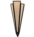 Sahara Taupe Idalight is transformed into an abstract lighting design similar to the famed deco designs showcased in Classic Hollywood theaters. This extraordinary V-shaped sconce is complemented with decorative accents and hardware featured in an Textured Black finish. The fixture is ideal for foyers, corridors and other interiors in homes, home theaters, resorts, hotels and restaurants. Handcrafted by highly skilled artisans in our 180,000 square foot manufacturing facility in Yorkville, New York. Custom colors, styles and sizes are available. Dimmable energy efficient lamping options offered. UL and cUL listed for damp and dry locations.