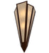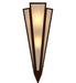 Beige Art Glass is transformed into abstract lighting design similar to the famed deco designs showcased in Classic Hollywood theaters. This extraordinary V-shaped sconce is complemented with decorative accents and hardware featured in a Sepia Brown finish. Ideal for foyers, corridors and other interiors in homes, home theaters, resorts, hotels and restaurants. Handcrafted by highly skilled artisans in our 180,000 square foot manufacturing facility in Yorkville, New York. Custom colors, styles and sizes are available. Dimmable energy efficient lamping options offered. UL and cUL listed for damp and dry locations.