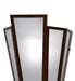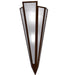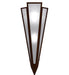 White Art Glass is transformed into abstract lighting design similar to the famed deco designs showcased in Classic Hollywood theaters. This extraordinary V-shaped sconce is complemented with decorative accents and hardware featured in a Sepia Brown finish. Ideal for foyers, corridors and other interiors in homes, home theaters, resorts, hotels and restaurants. Handcrafted by highly skilled artisans in our 180,000 square foot manufacturing facility in Yorkville, New York. Custom colors, styles and sizes are available. Dimmable energy efficient lamping options offered. UL and cUL listed for damp and dry locations.