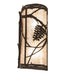 Invite the beauty of nature into your home with this charming wall fixture featuring metal accents designed as a Pinecone, Pine needles, and branches. The stunning Silver Mica diffuser is enhanced with a Distressed Chestnut finish. This wall fixture can be complemented with model 237165, the Whispering Pines Left Wall Sconce. The Whispering Pines Wall Sconce is included in our American-made, American-designed, handcrafted Nature Inspired Collection. It is manufactured in Yorkville, New York, and is UL and cUL listed for dry and damp locations. Upstate New York's adventurous playland, known as the Adirondack Mountains, with its many breathtaking forests, lakes, and rivers, is the spiritual birthplace of Meyda and inspires our rustic-themed mica collections.