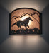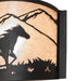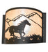 Running wild and free along the mountainside and into the sunset, this Running Horse is adorned with a windswept mane and flowing tail. The horse is graced with muscle that is so powerful yet so gentle. This exquisite ADA-compliant wall Sconce captures a horse silhouette with a matching frame and hardware in a Wrought Iron finish. The hardware is complemented with a stunning Silver Mica diffuser. This lighting fixture is ideal for illuminating hallways, entryways, and other residential, hospitality, and commercial spaces throughout the US, including Durango, Colorado, Amarillo, Texas, and Santa Clarita, California. The Running Horses Wall Sconce is featured in our American-made, American-designed, handcrafted Wildlife Lighting Collection. This fixture is manufactured in Yorkville, New York. UL and cUL listed for dry and damp locations.
